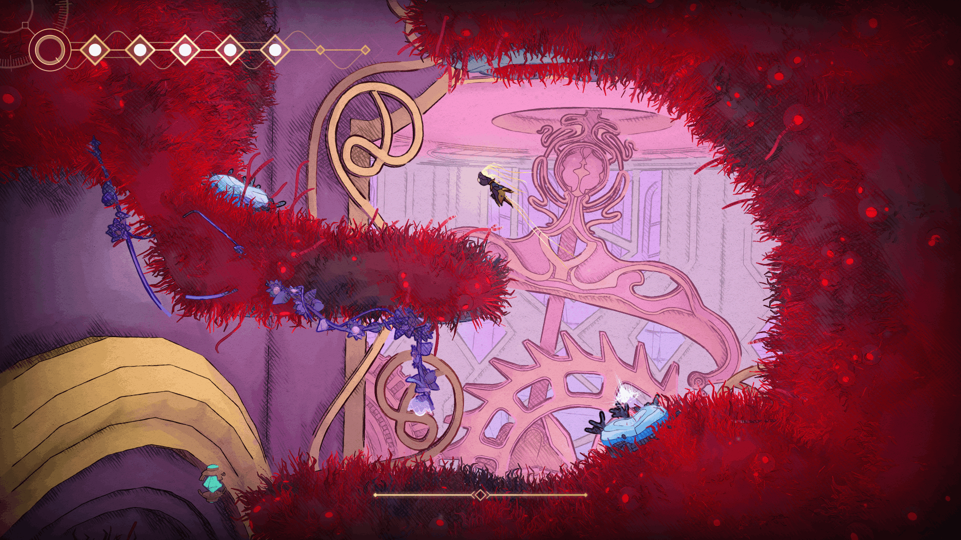 MIO: Memories in Orbit is more than a beautiful journey. It is also an ever-growing challenge. Its gameplay blends precise platforming and dynamic combat, inviting players to adapt, experiment, and master an evolutive arsenal of abilities and modifiers. The Vessel is full of threats and dreadful creatures, perfect for creating epic battles and truly choreographed performances. It is also full of secrets, and the game won’t hold your hand: curiosity and skill are your greatest tools as you uncover hidden paths, resources and treacherous enemies.
