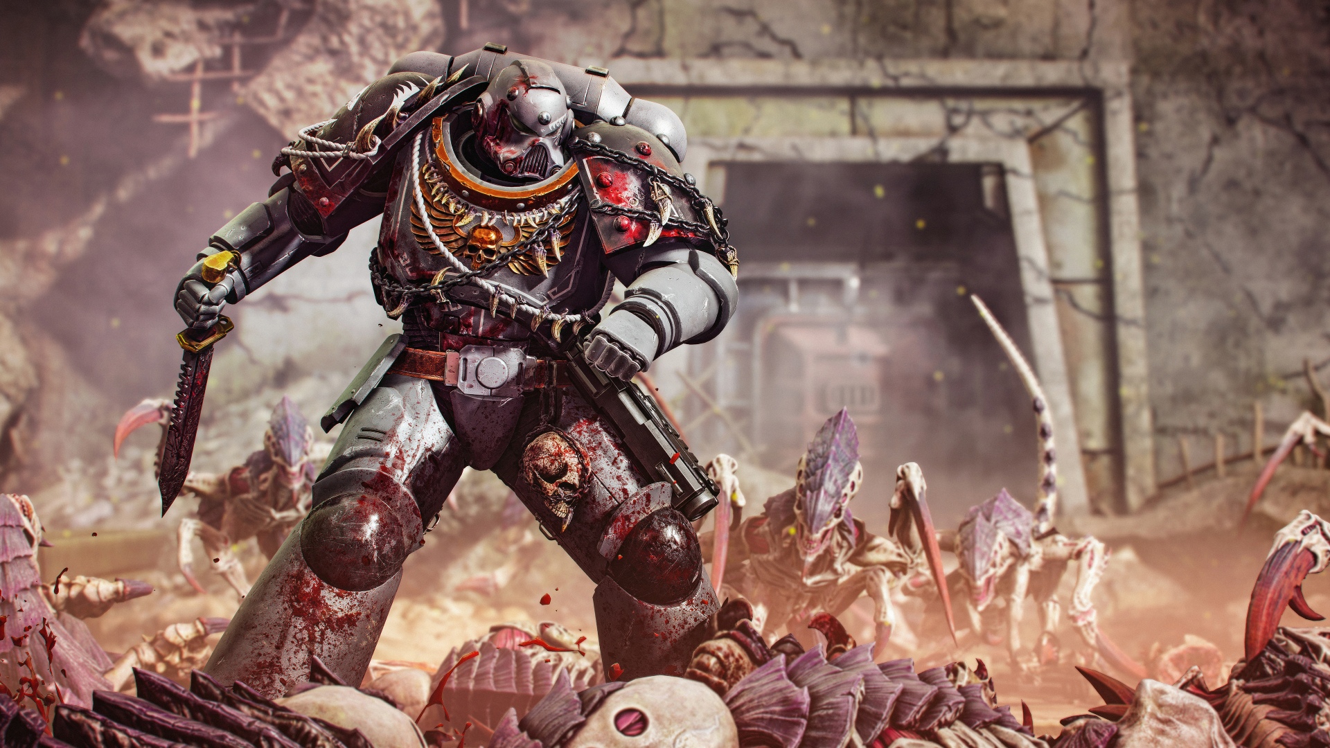 Today’s update is accompanied by its usual set of Season Pass 2 cosmetics! On one end, the Raven Guard returns with a Champion Pack adding a new full-body armour skin for the Assault class and a unique Bolt Pistol skin inspired by their iconography. On the other hand, the Carcharodons receive their very first armour pieces with two pauldrons, two helmets and an exclusive chestplate celebrating the mysterious yet beloved prowlers of the outer dark.